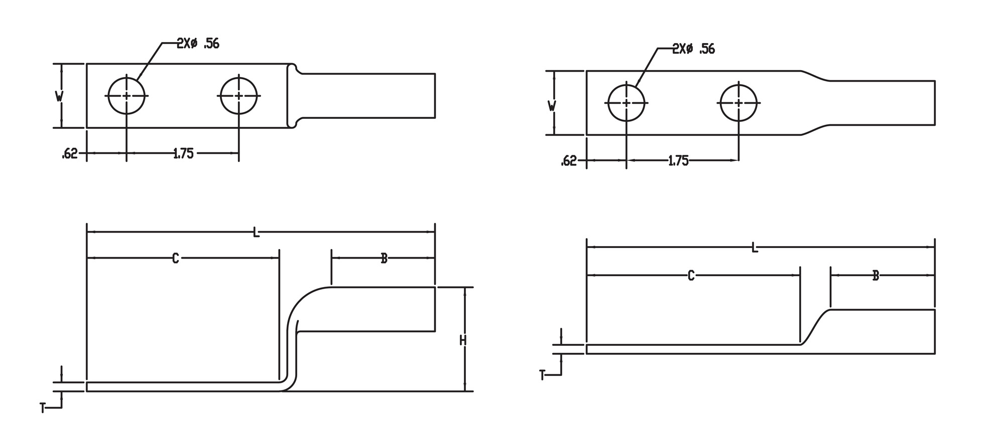 Copper Compression Lug - Long Barrel, Two Hole Stacking Lugs with Closed Transition