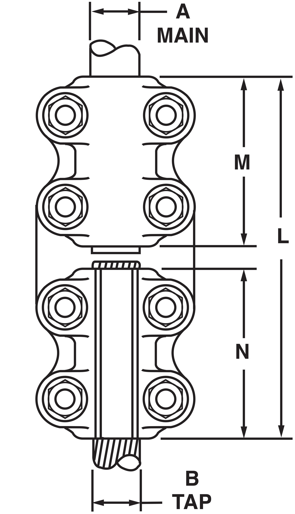 - Cap on tap end can be reversed to accommodate a wide range of conductor sizes