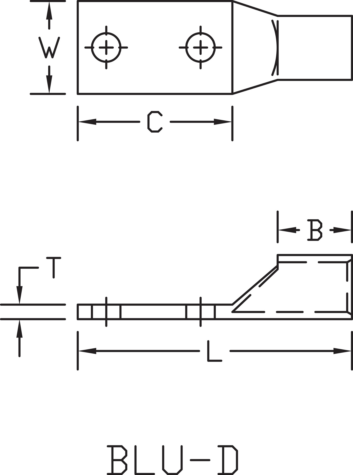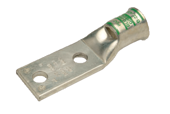 Copper Compression Lug - Standard Flared Barrel, Two Hole Tongue with Inspection Window 2/0 AWG