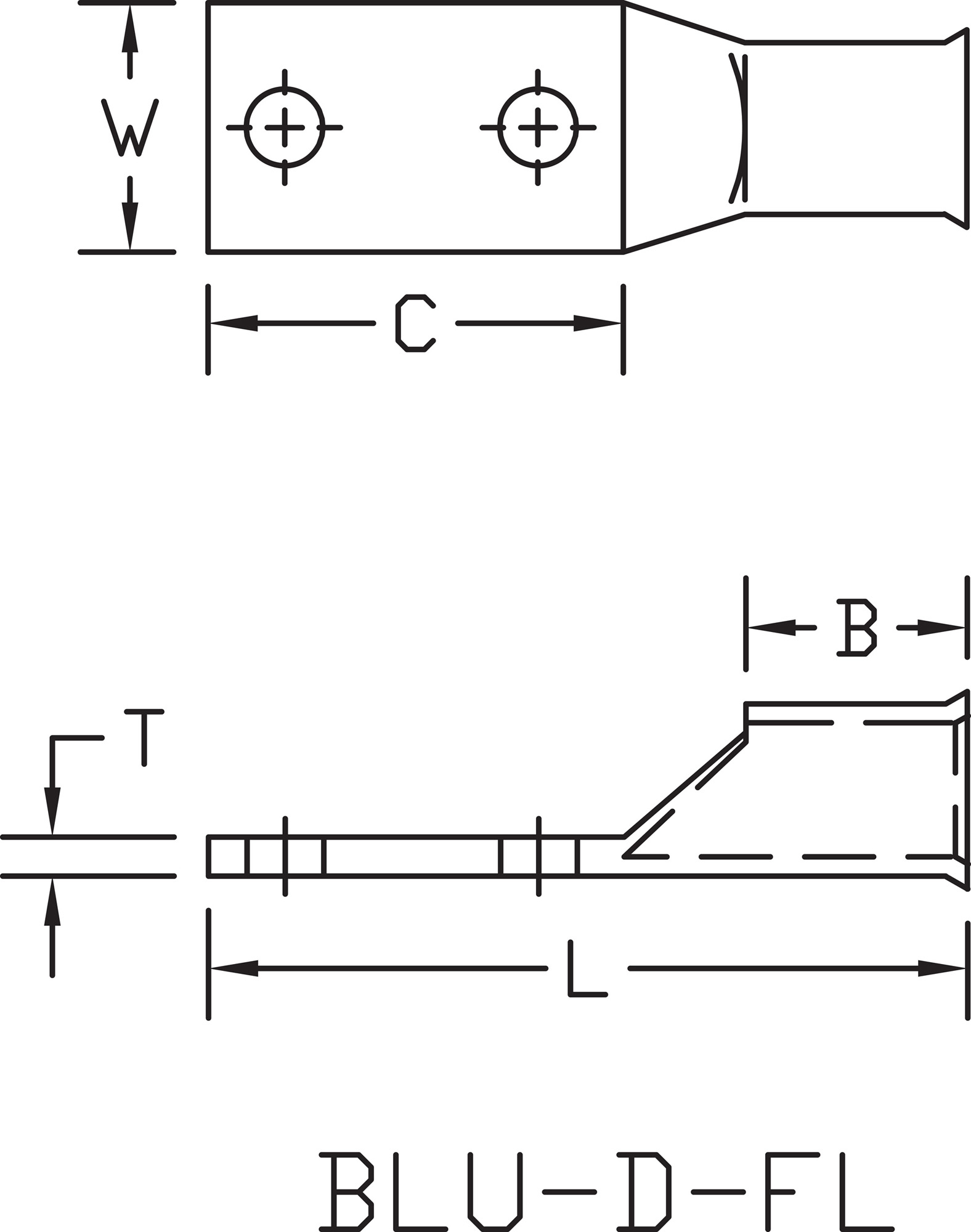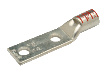 Copper Compression Lug - Standard Barrel, Two Hole Tongue with Inspection Window 4 AWG
