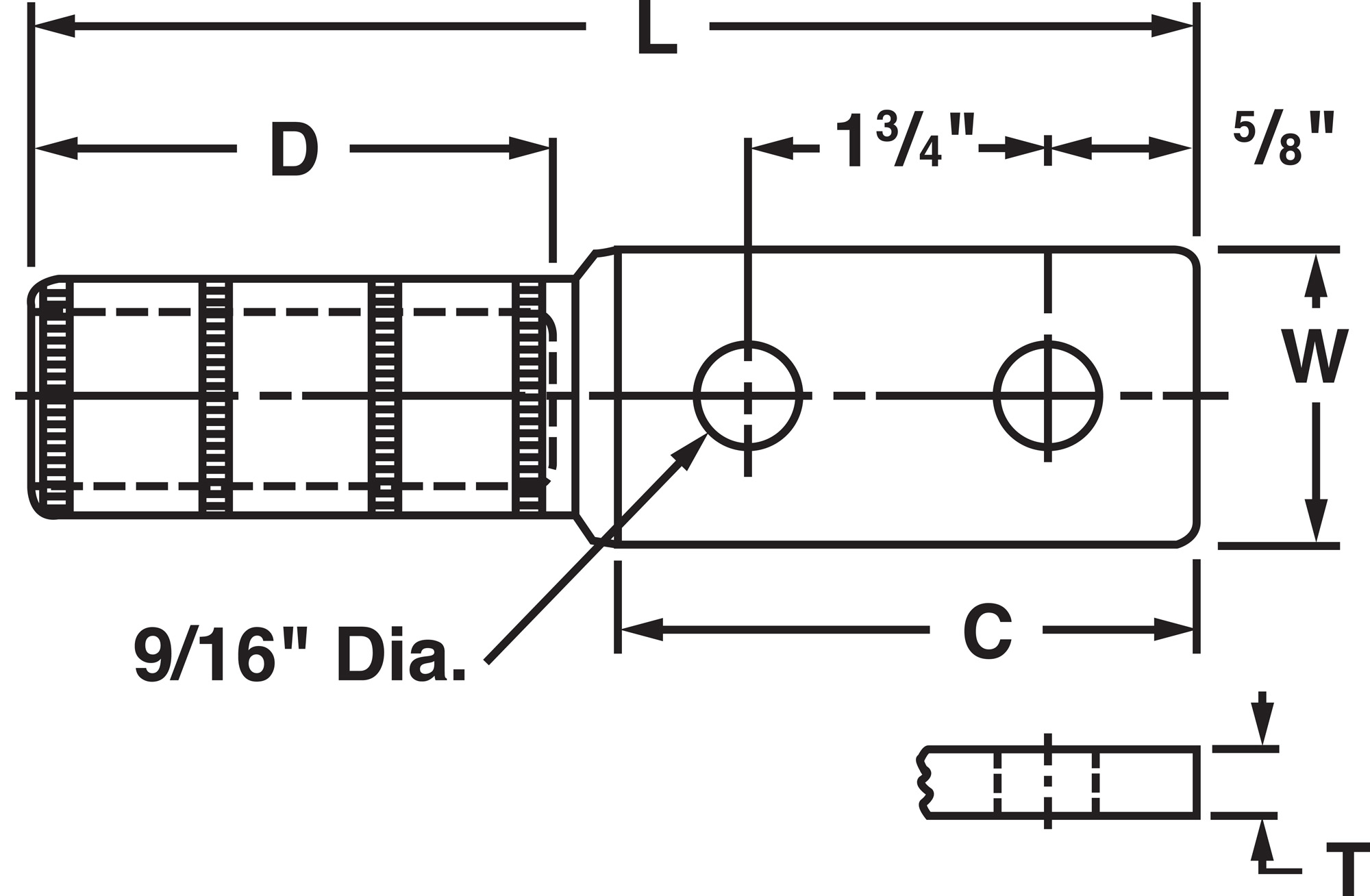 Aluminum Compression Terminal - Two Hole Tongue Side Formed 2 AWG
