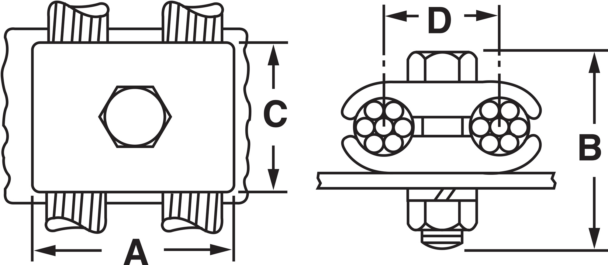 • Designed to clamp two copper conductors to a flat surface or 1/4” thick bus bar
