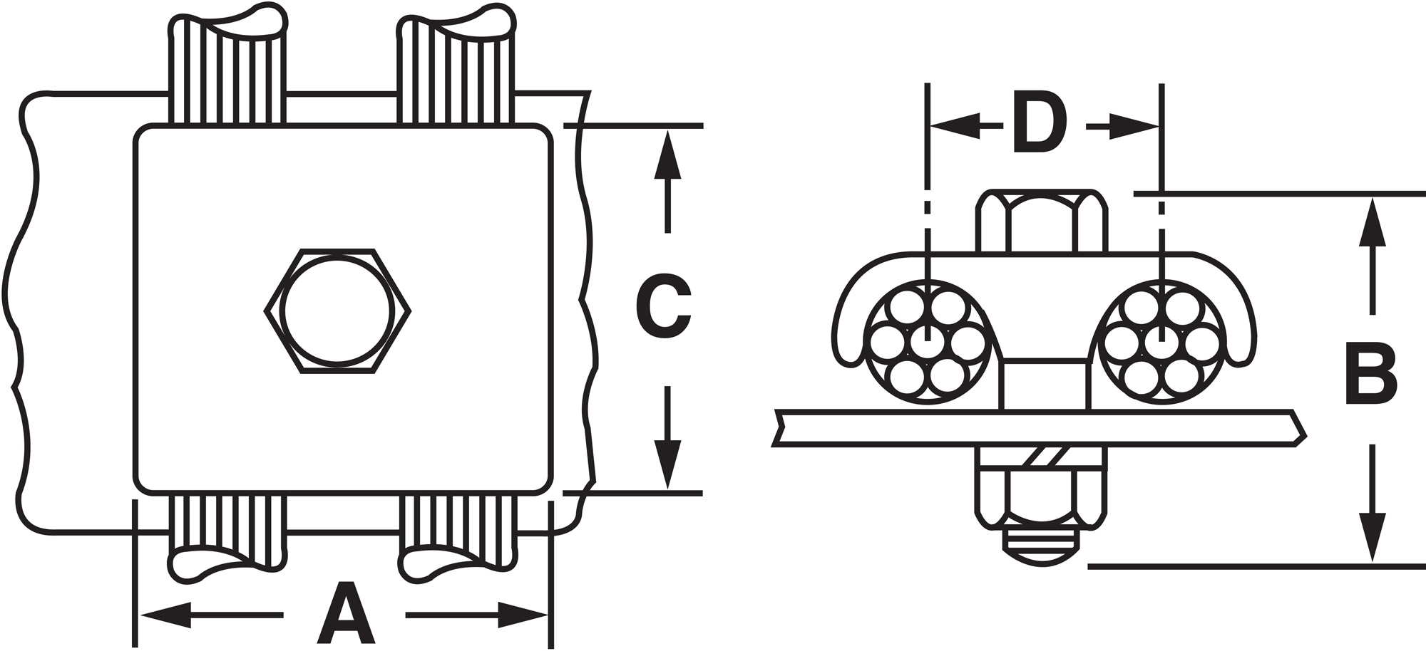 • Designed to clamp two copper conductors to a flat surface or 1/4” thick bus bar