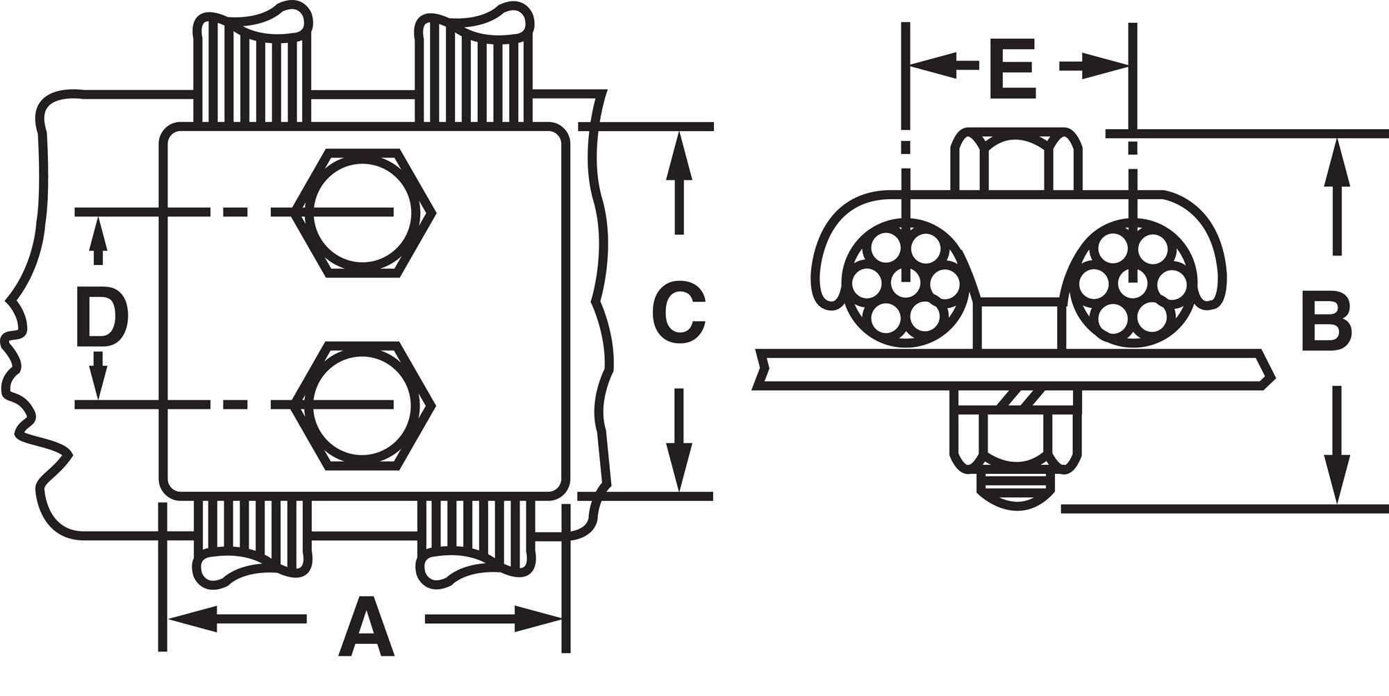 • Designed to clamp two copper conductors to a flat surface or 1/4” thick bus bar