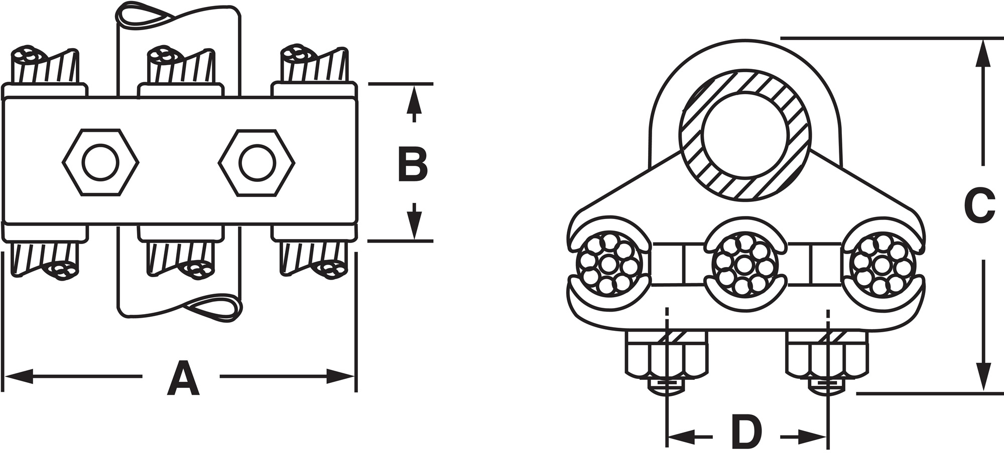 - Used to connect three equal size cables to rod, water pipe, or structured tube