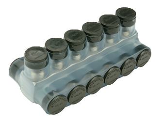 Aluminum Clear Pre-Insulated Power Bar - Six Ports with Double Sided Conductor Entry 14 AWG - 2/0 AWG