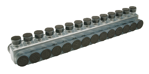 Aluminum Clear Pre-Insulated Power Bar - Fourteen Ports with Double Sided Conductor Entry 10 AWG - 350 kcmil
