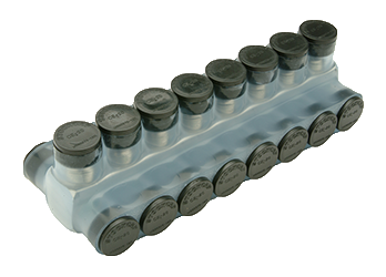 Aluminum Clear Pre-Insulated Power Bar - Eight Ports with Double Sided Conductor Entry 10 AWG - 350 kcmil