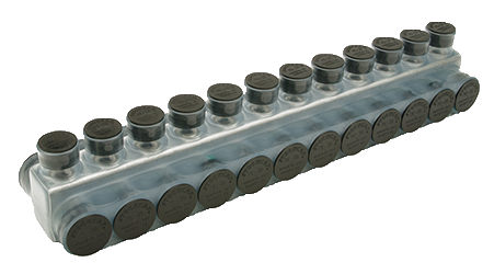 Aluminum Clear Pre-Insulated Power Bar - Twelve Ports with Double Sided Conductor Entry 2 AWG - 750 kcmil