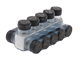 Aluminum Clear Pre-Insulated Power Bar - Five Ports with Double Sided Conductor Entry 2 AWG - 750 kcmil