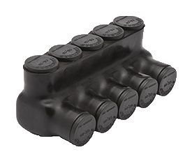 Aluminum Black Pre-Insulated Power Bar - Five Ports with Single Sided Conductor Entry 10 AWG - 250 kcmil
