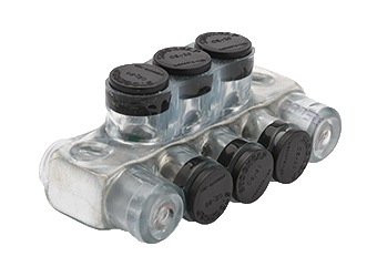 Aluminum Clear Pre-Insulated Mountable Power Bar - Three Ports with Single Sided Conductor Entry 1/0 AWG - 1000 kcmil