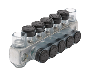 Aluminum Clear Pre-Insulated Mountable Power Bar - Five Ports with Single Sided Conductor Entry 14 AWG - 2/0 AWG