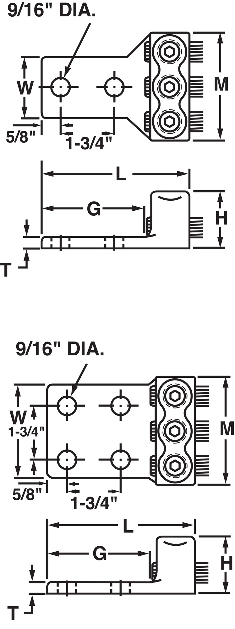 - Two-hole mounting pad allows for maximum surface contact in heavy duty applications