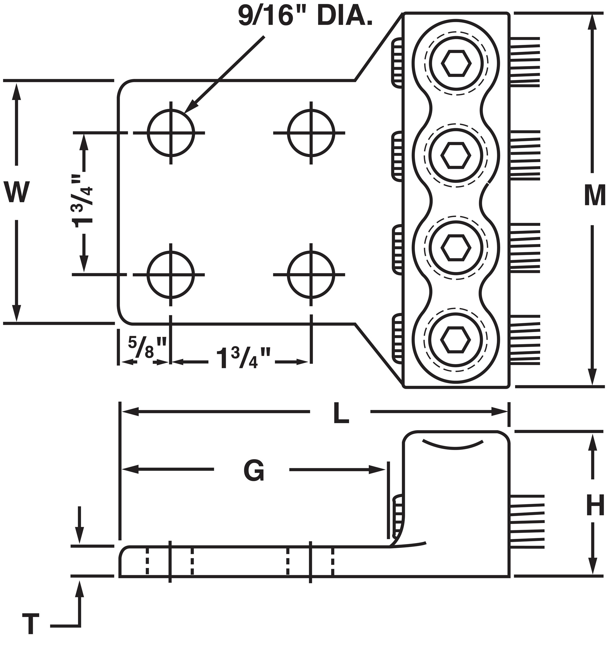 - Four-hole mounting pad allows for maximum surface contact in heavy duty applications
