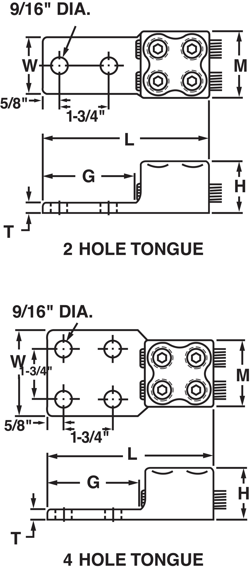 - Two-hole mounting pad allows for maximum surface contact in heavy duty applications