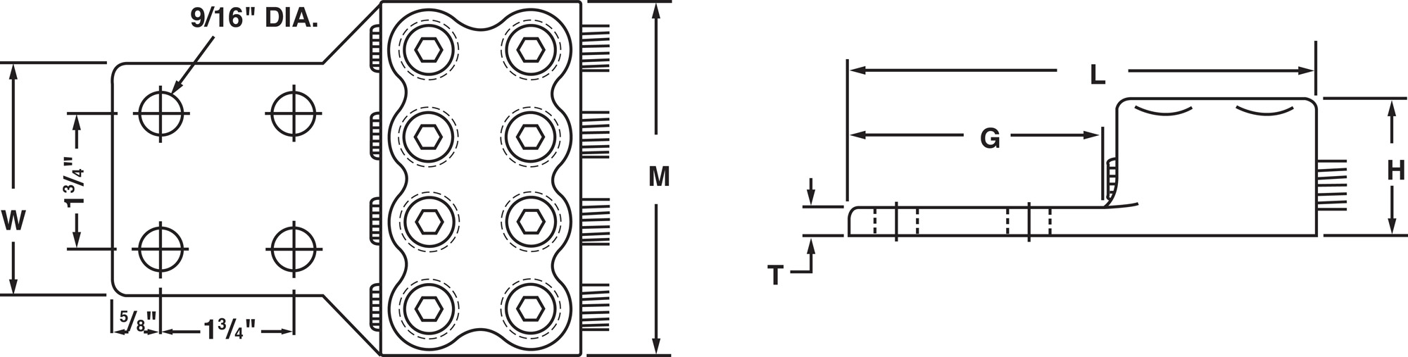 - Four-hole mounting pad allows for maximum surface contact in heavy duty applications